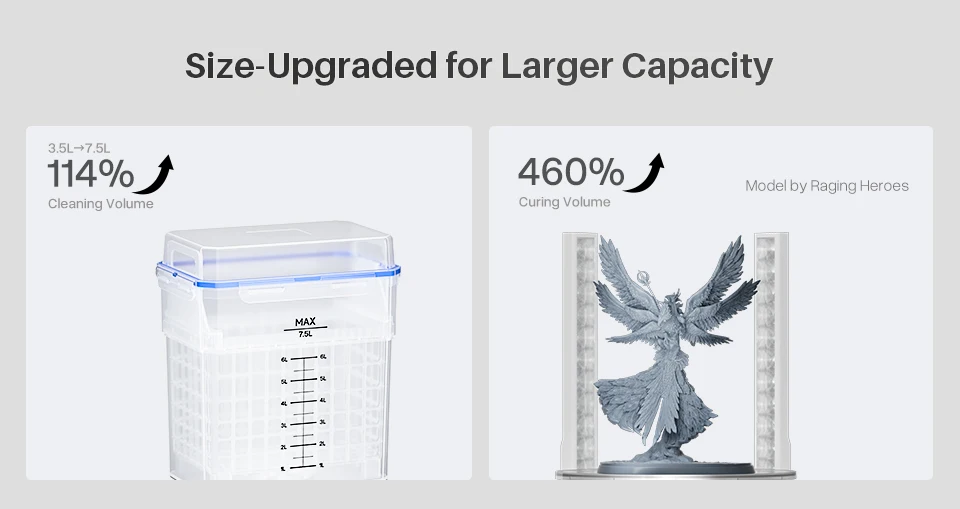 Увеличенный размер для большей емкости Обновитесь до Mercury Plus V3.0 для увеличения емкости и максимальной эффективности.Разработанная с щедрой емкостью для очистки в 7,5 литра, что в 2,1 раза больше, чем у V2.0, и увеличенным размером отверждения в 5,6 раза, эта машина обеспечивает легкую обработку более крупных моделей или нескольких отпечатков за один раз.